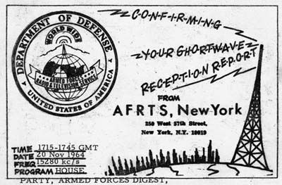 Empfangsbestätigung der AFRTS, New York, vom 20. November 1964, 15280 kHz Kurzwelle historisch
